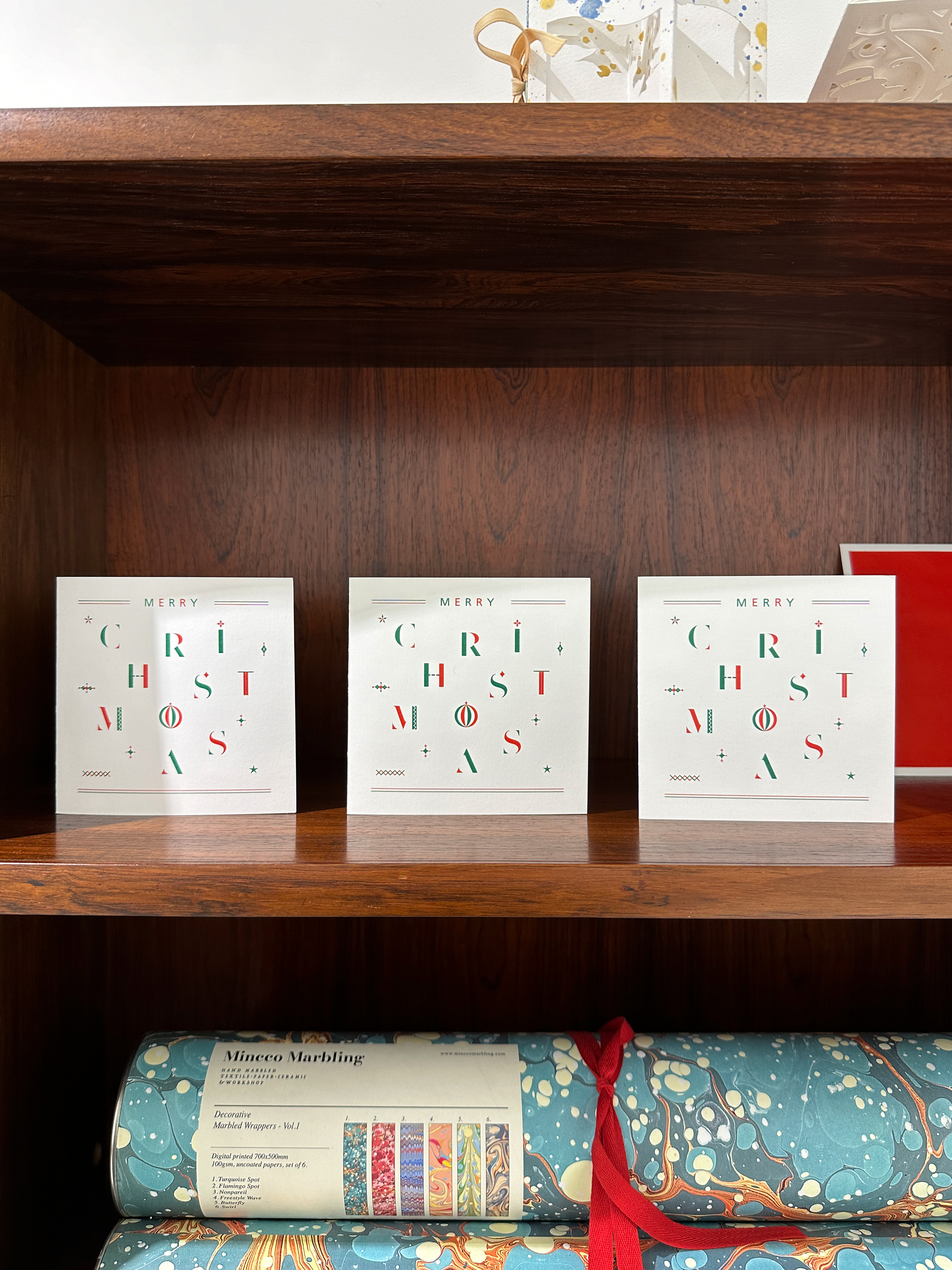 크리스마스 타이포와 오너먼트를 모티브로 디자인된 카드입니다! 보자마자 크리스마스 분위기를 단번에 느낄 수 있는 제품이에요🎄