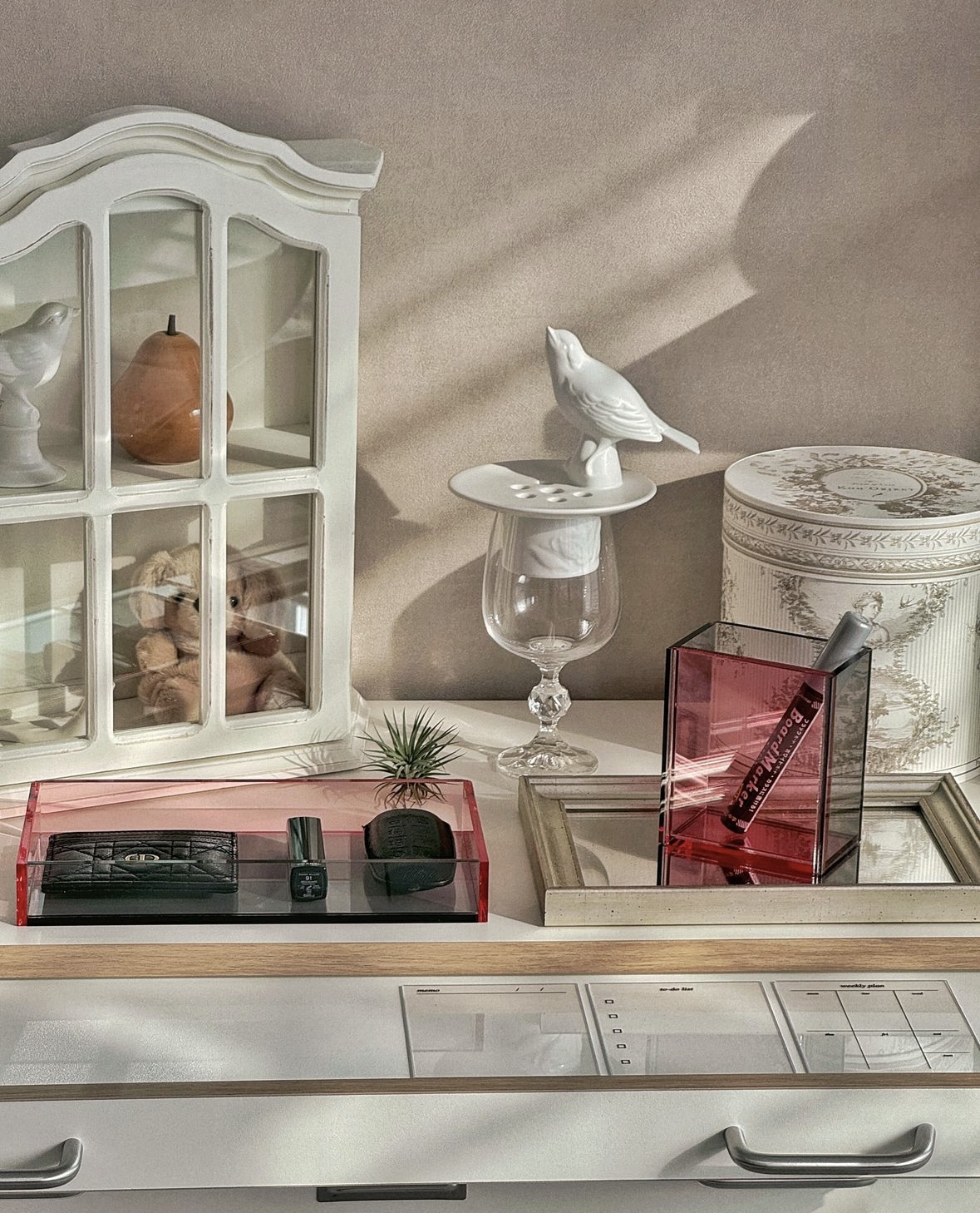 차키, 립스틱, 카드지갑을 올려두니