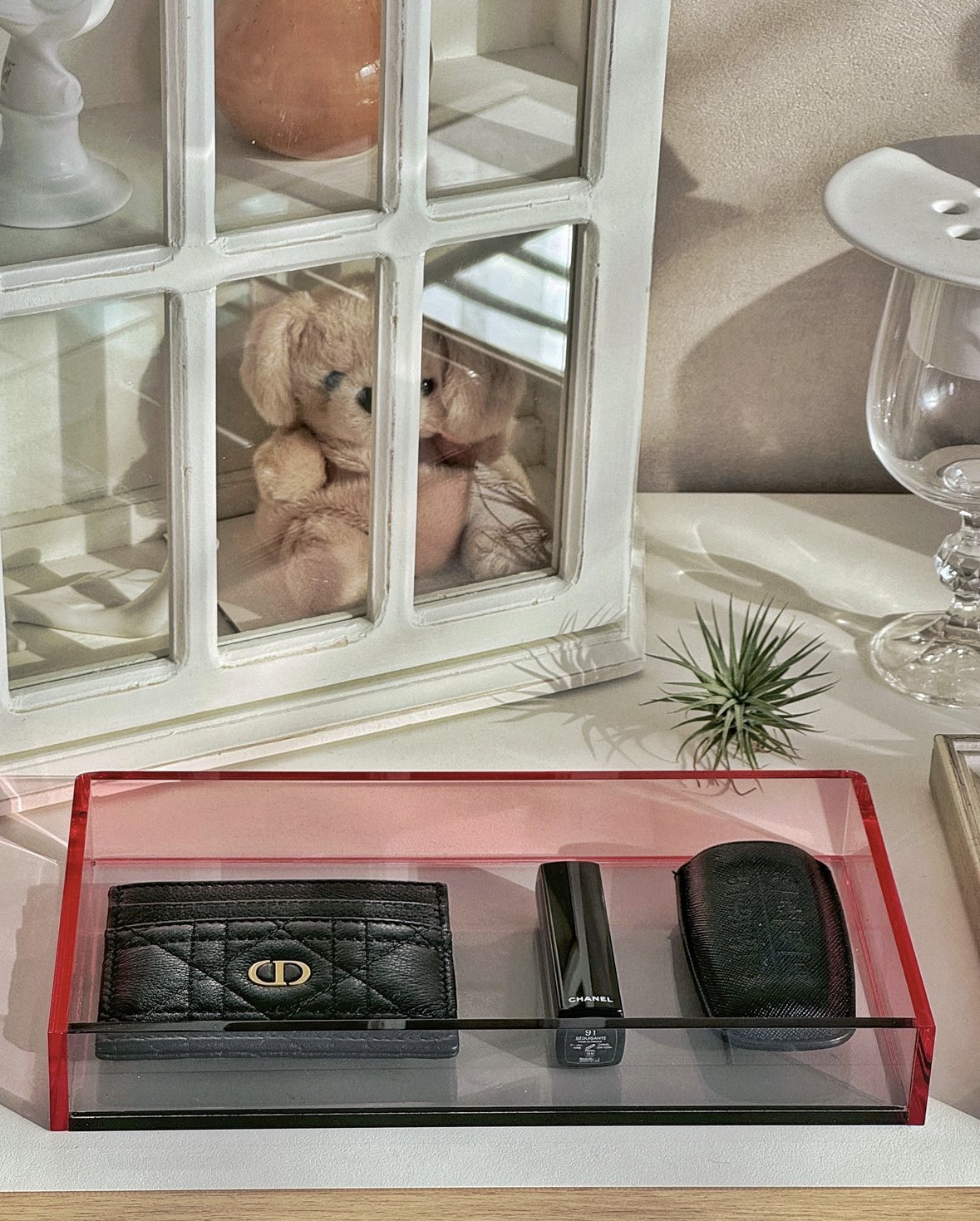 차키, 립스틱, 카드지갑을 올려두니