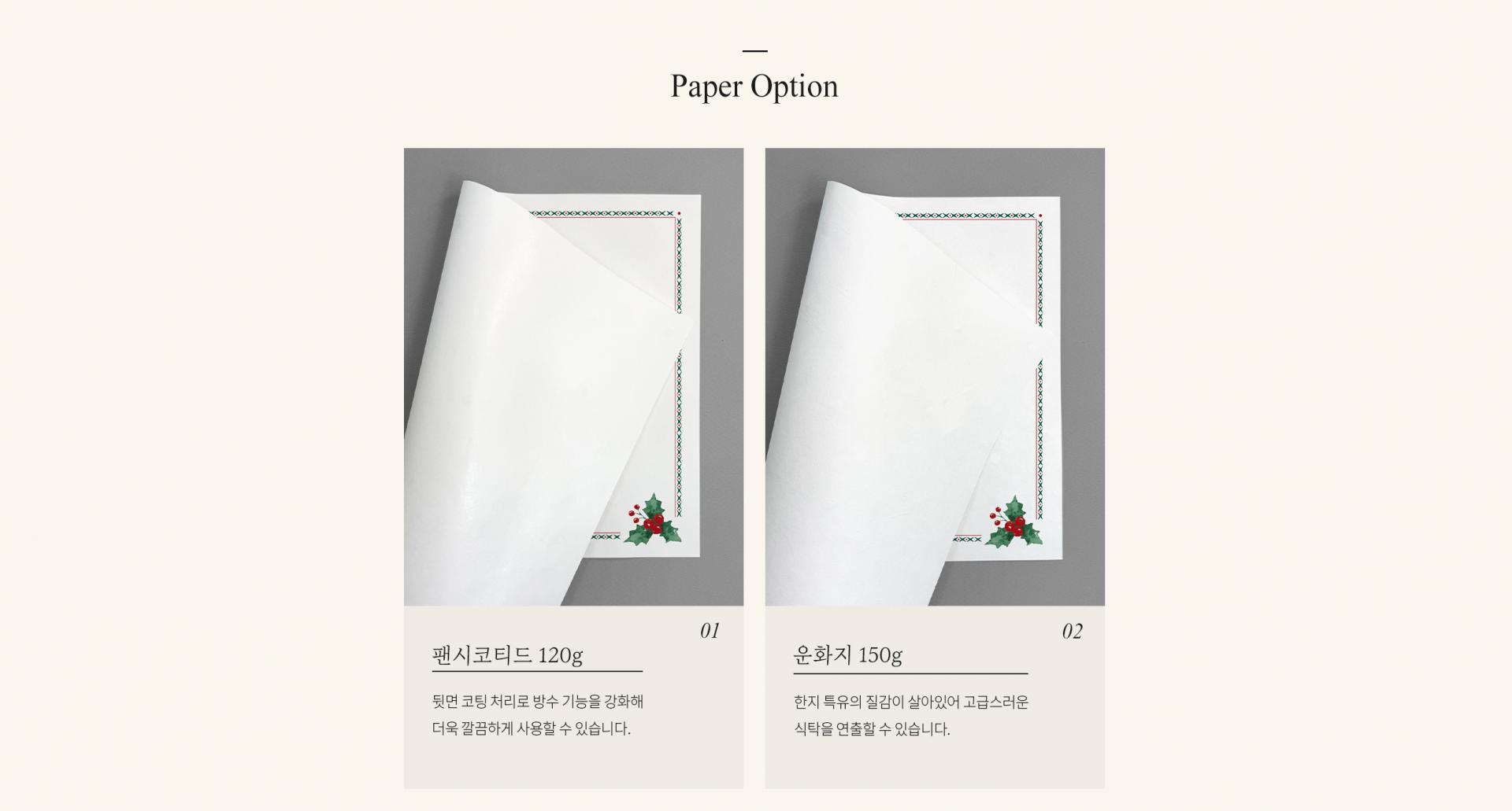 총 2가지 타입의 종이 중 선택 하실 수 있습니다.